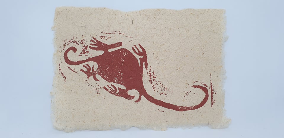 Small Rock Art Print on Harakeke Paper – Taniwha 3 (Sky Father)