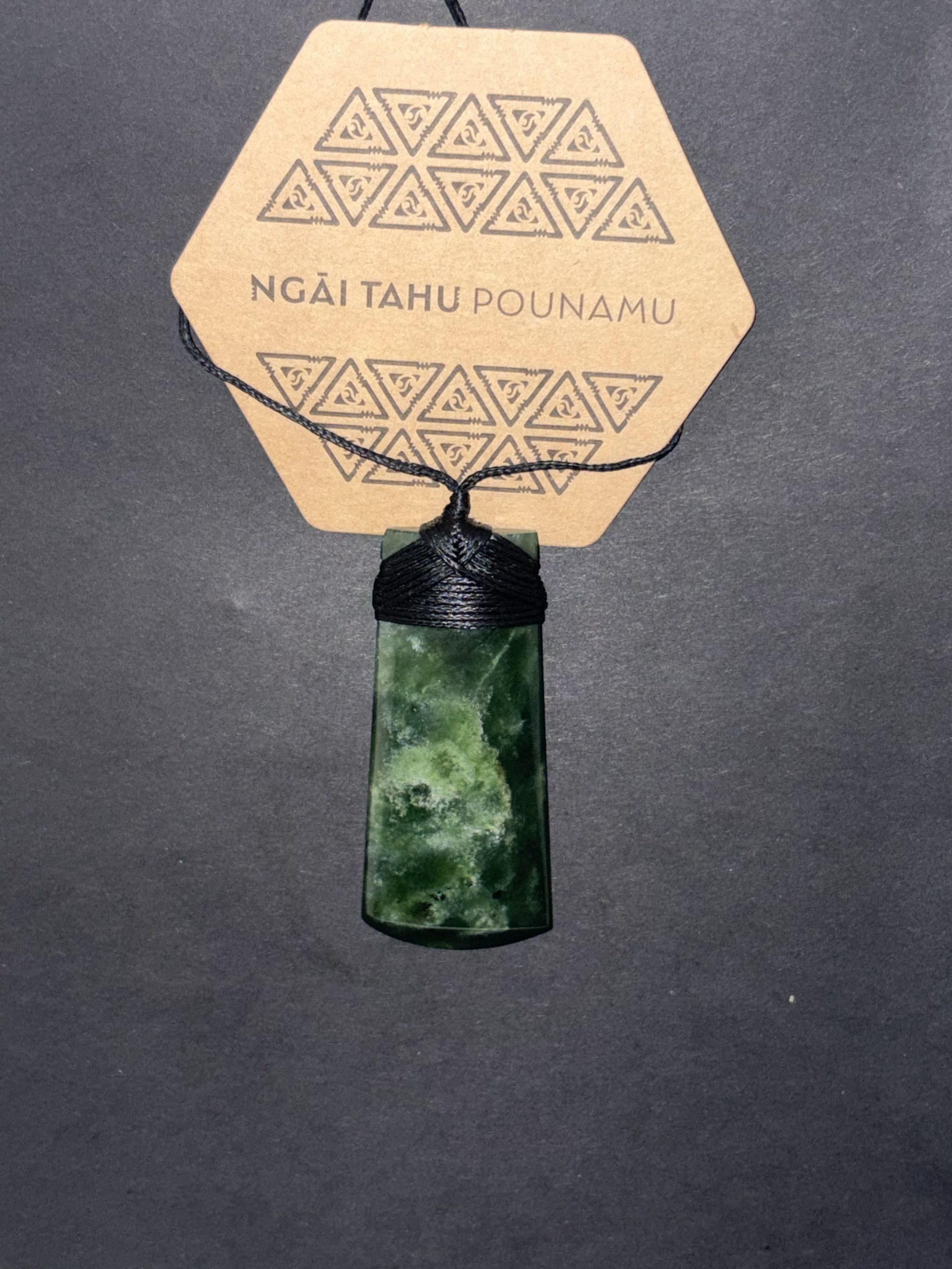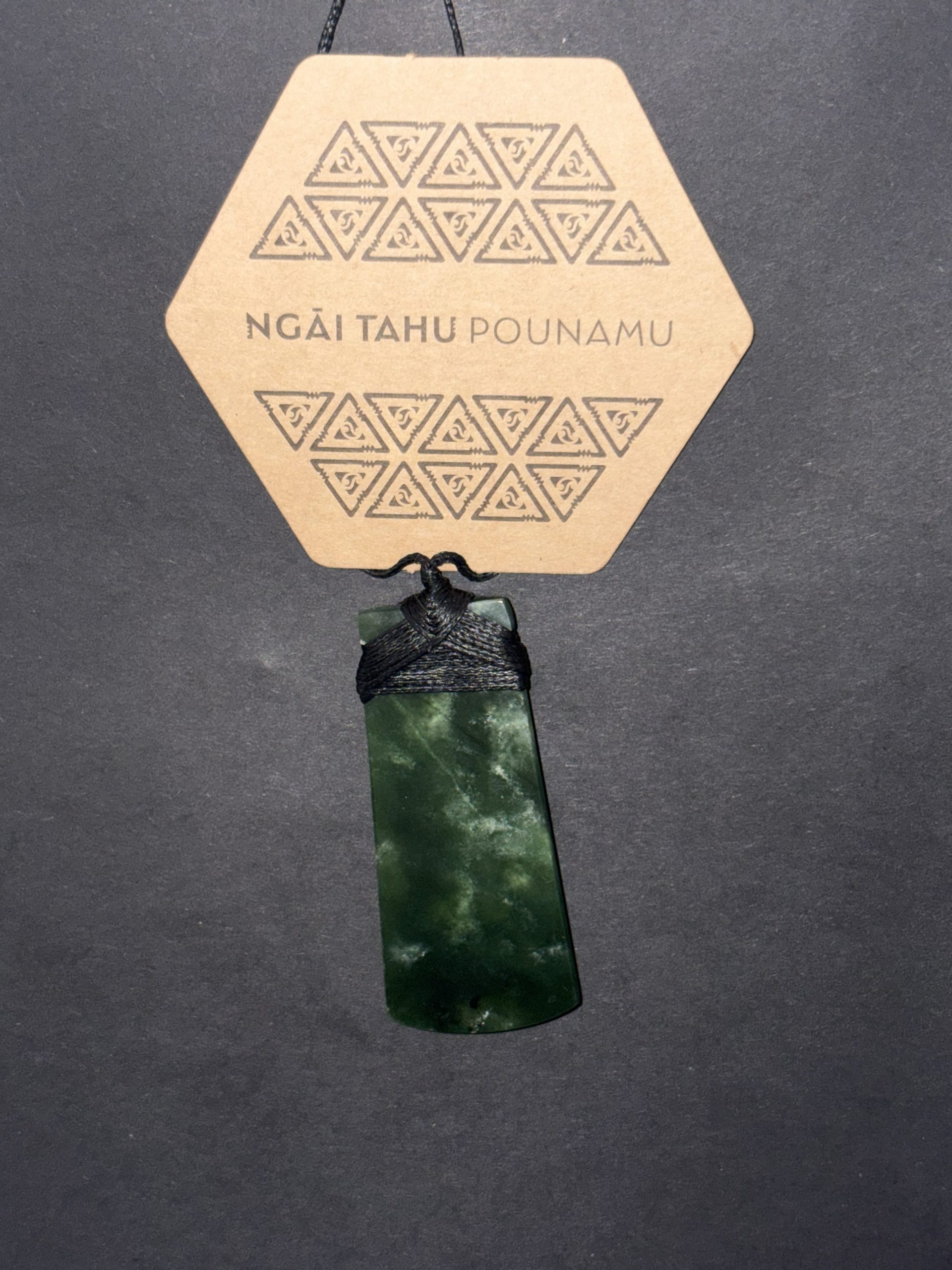 Ngāi Tahu Pounamu prominently displays a mark of authenticity and an exclusive trace code. When entered online www.ngaitahupounamu.com/authentic/trace, this code identifies the origin and whakapapa of the stone.